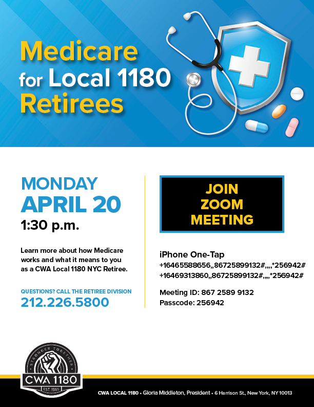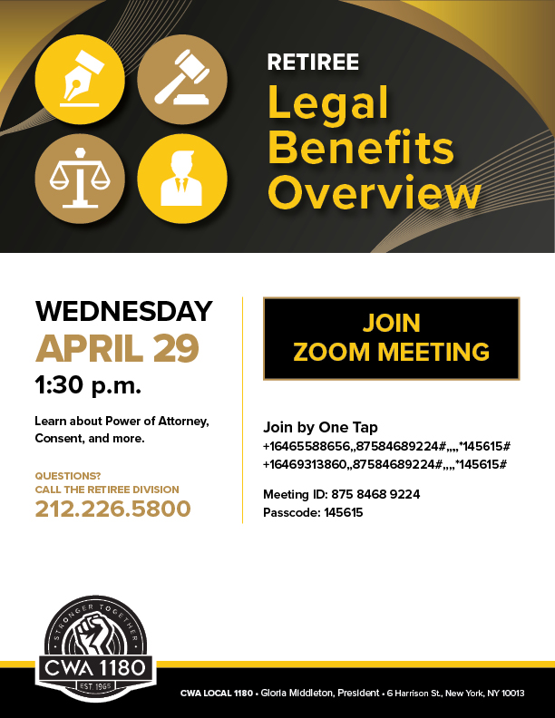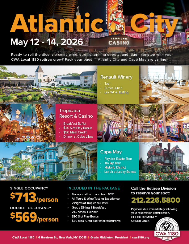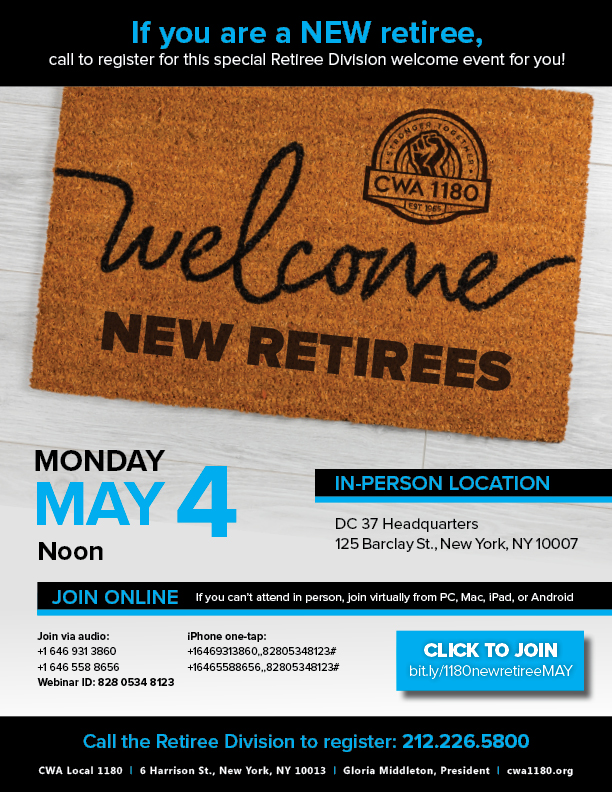 Call the Retiree Division to reserve your spot today: 212.226.5800 |